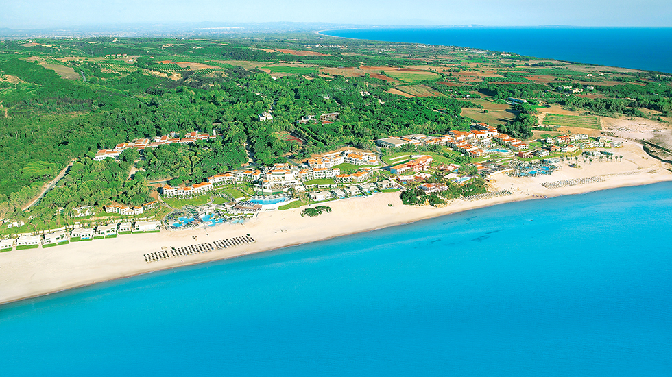 Семейные виллы, вдохновленные архитектурой древней Олимпии, располагаются на линии пляжа. Две спальные комнаты, 2 ванные комнаты, гостиная-столовая обставлена с изысканным и тонким вкусом. Из окон гостиной открывается вид на экзотические пальмы, пляж и Ионическое море. Расположенные на песчаном пляже виллы совершенны для отдыха на свежем воздухе. Каждая имеет открытую террасу с зонтиками и шезлонгами для принятия солнечных ванн. Частный шатер на пляже.